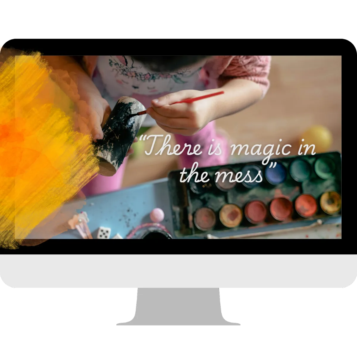 A 2-hour in-person experience for connection with your child through playful art, imagination and presence. You will: